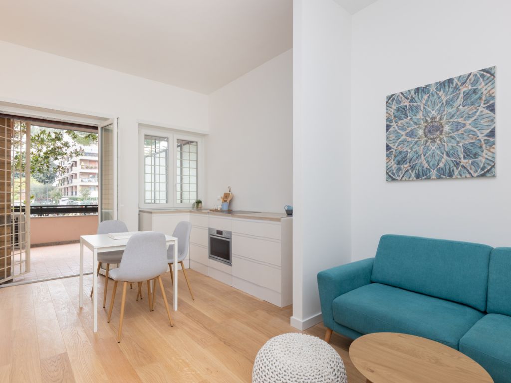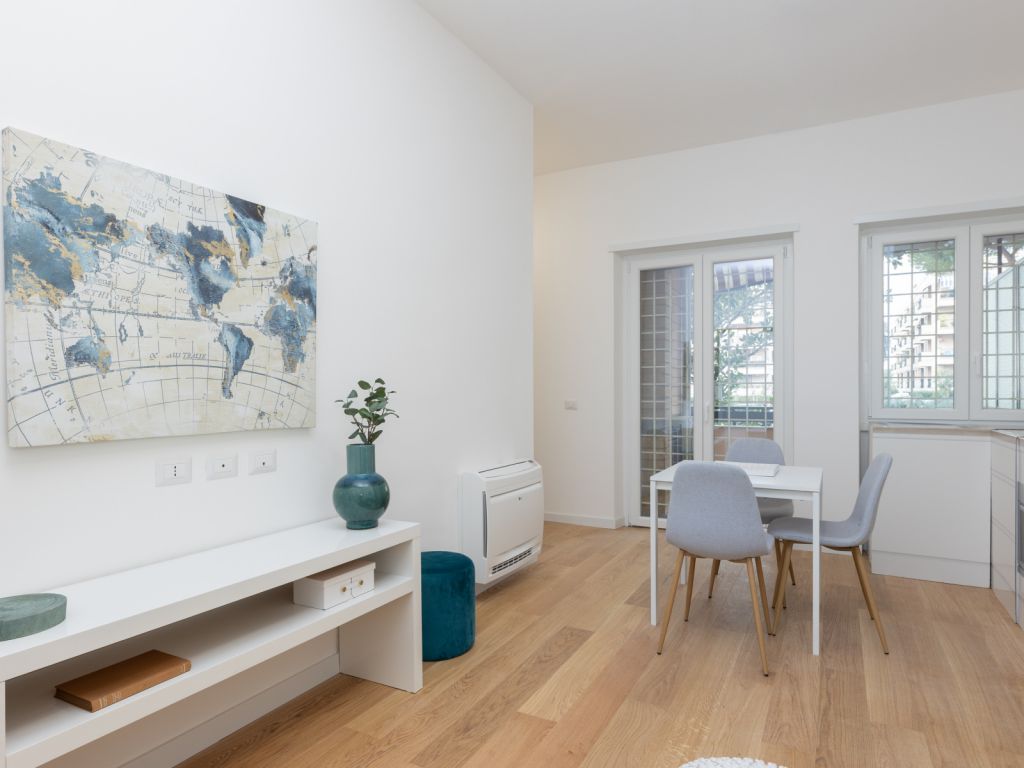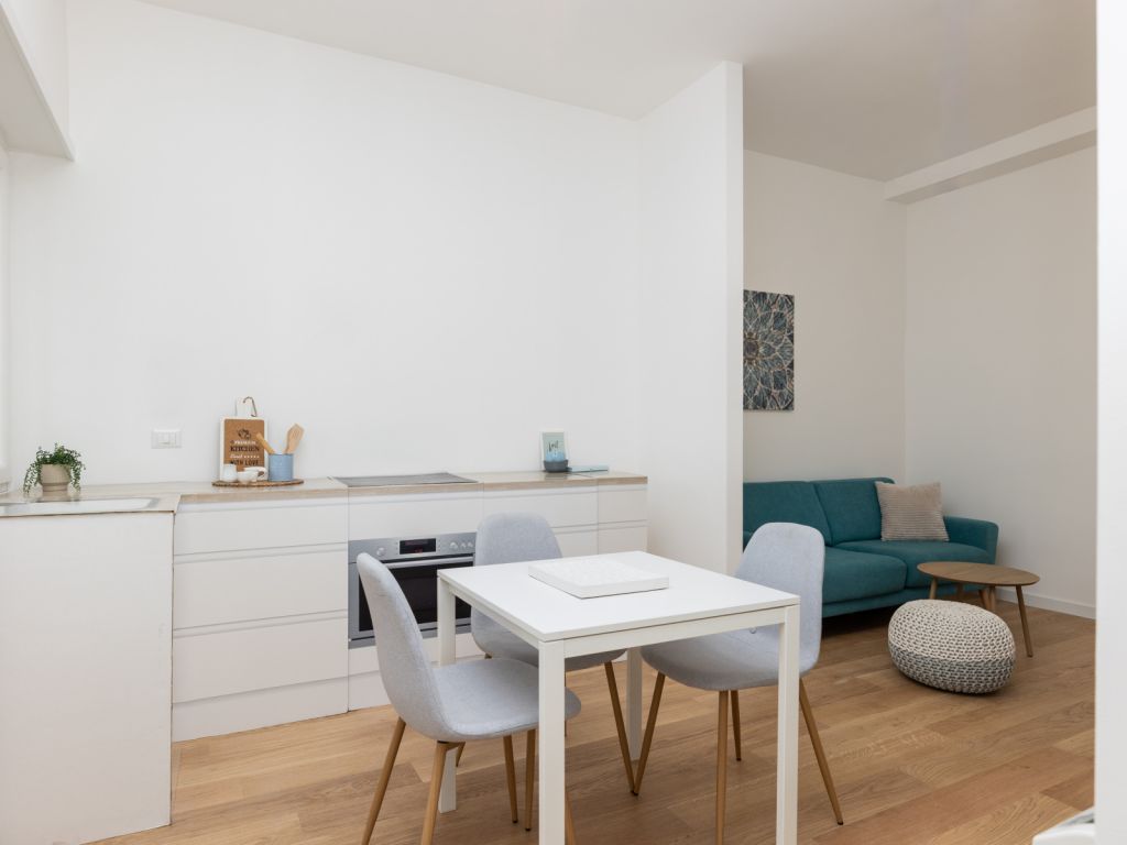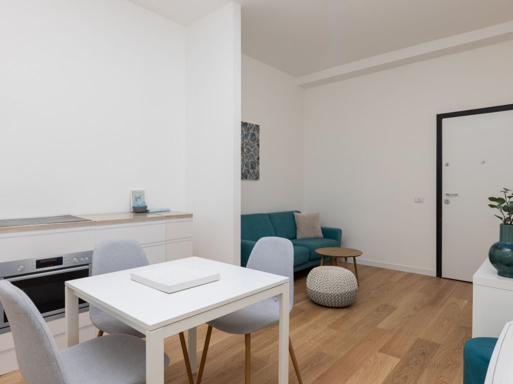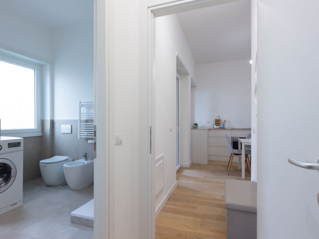 In comprensorio immerso nel verde con servizio di portineria, proponiamo la vendita di un appartamento posto al 1° piano, completamente ristrutturato e mai abitato. Questo bilocale si estende su una superficie di 52 mq commerciali con esposizione a Ovest ed è così composto: ingresso, soggiorno con angolo cottura (predisposizione per piano cottura ad induzione), camera matrimoniale, bagno arredato con finestra (con finiture di qualità) e terrazzo di 11 mq. Possibilità di acquistare una cantina di 8 mq ad € 7.000.