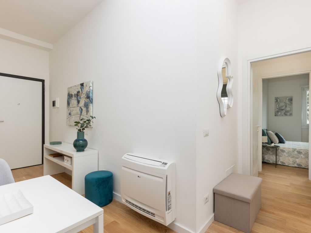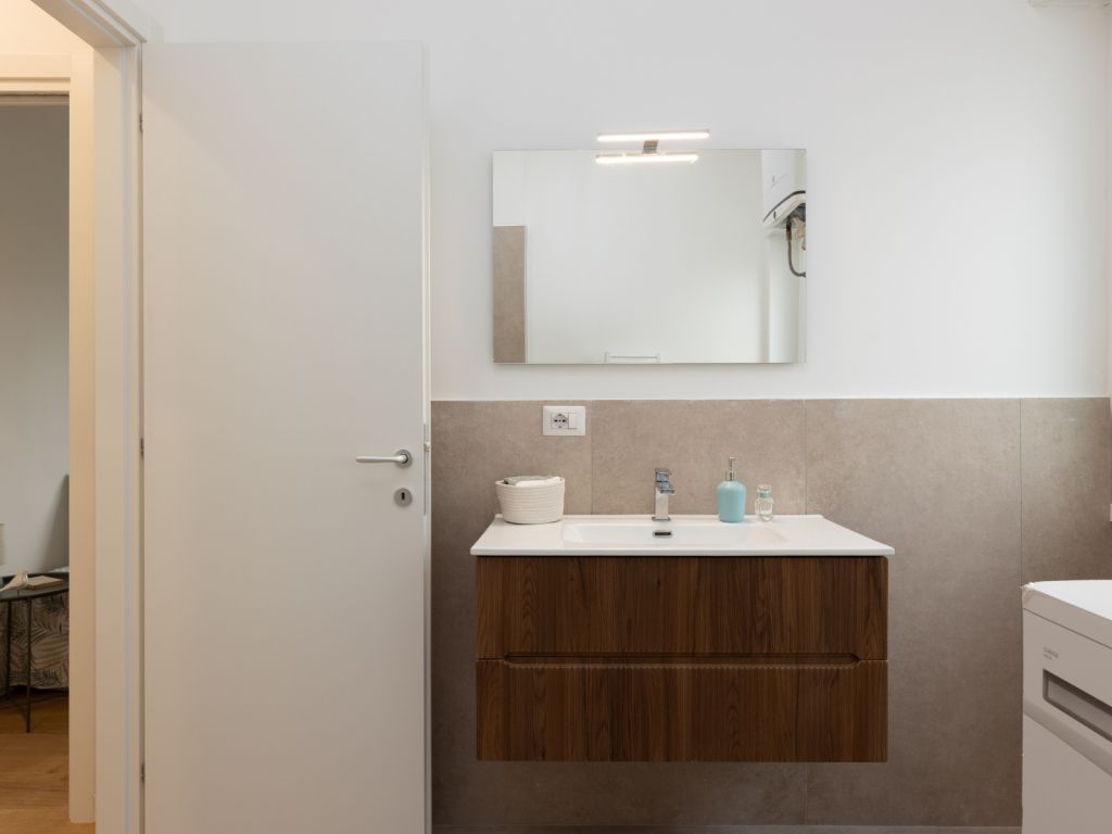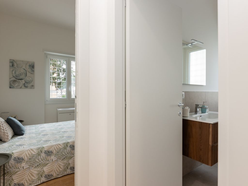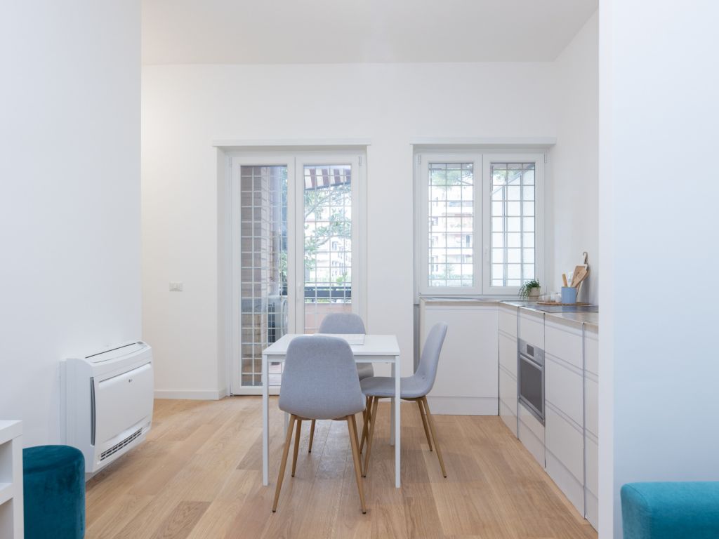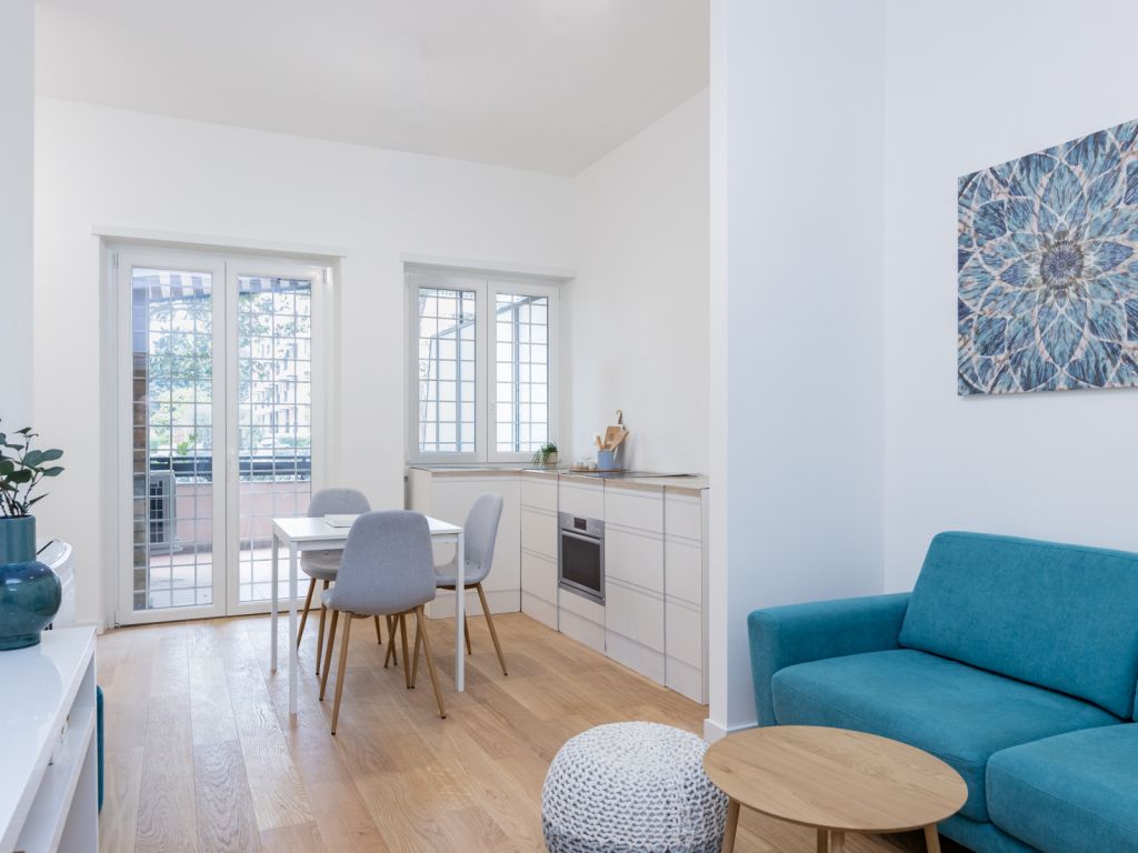 In comprensorio immerso nel verde con servizio di portineria, proponiamo la vendita di un appartamento posto al 1° piano, completamente ristrutturato e mai abitato. Questo bilocale si estende su una superficie di 52 mq commerciali con esposizione a Ovest ed è così composto: ingresso, soggiorno con angolo cottura (predisposizione per piano cottura ad induzione), camera matrimoniale, bagno arredato con finestra (con finiture di qualità) e terrazzo di 11 mq. Possibilità di acquistare una cantina di 8 mq ad € 7.000.