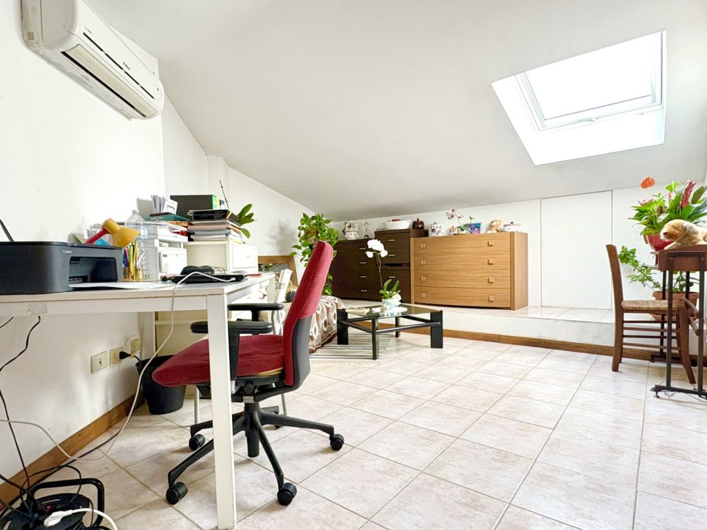 - al primo piano mansardato 50mq un ambiente dove poter ricavare camera, cameretta, un ampio terrazzo di 140mq e un giardino di 40mq con un comodo posto auto scoperto.