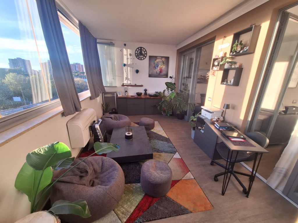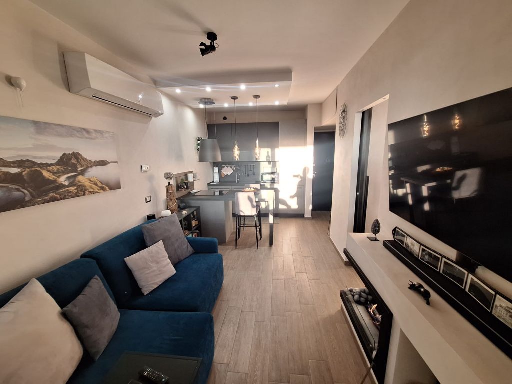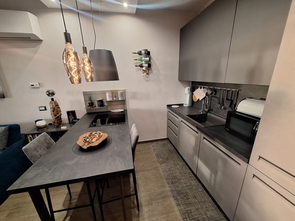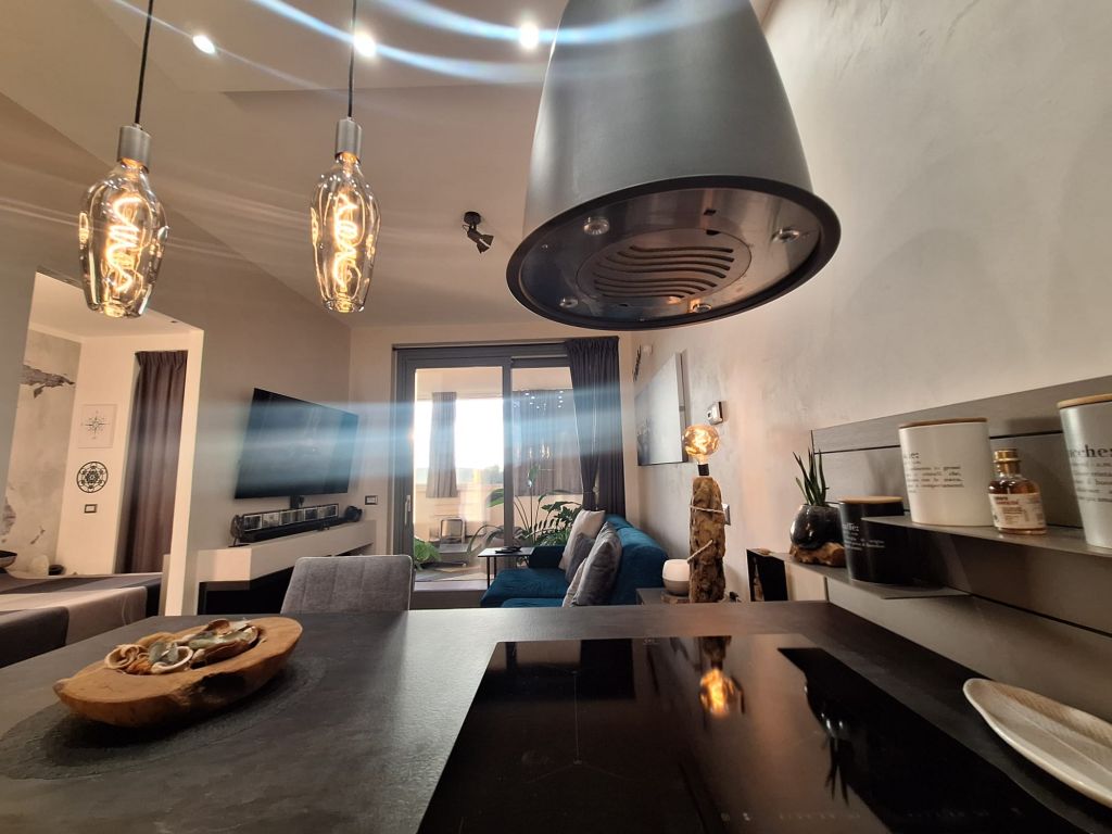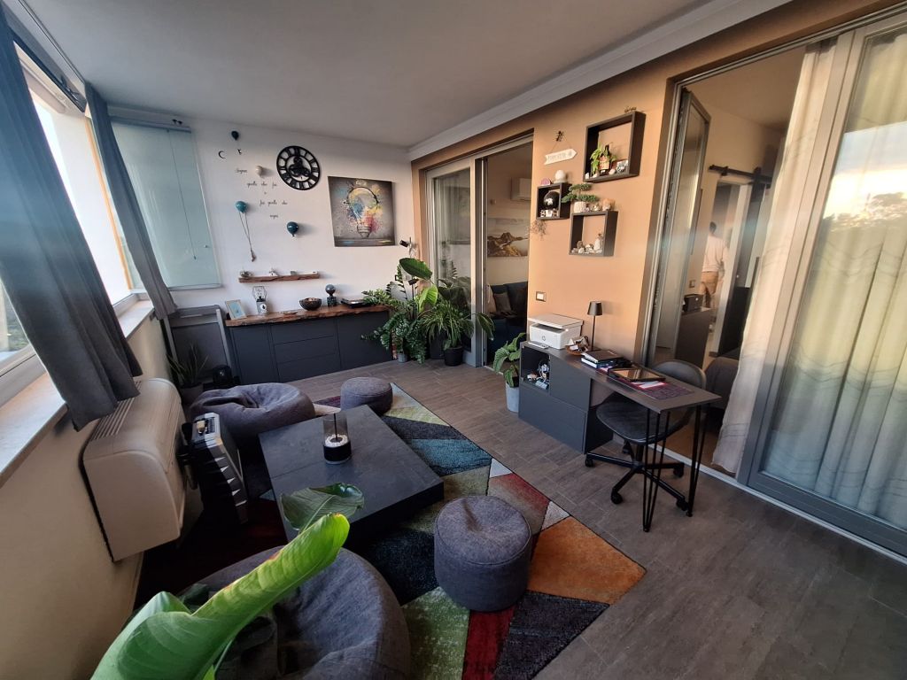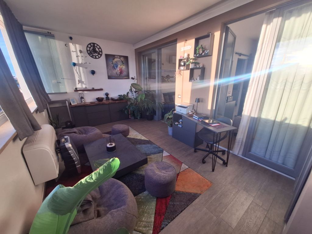 L'immobile è in perfette condizioni interne e si vende arredato con materiali di qualità e design. L'appartamento si compone di accogliente zona living con angolo cottura, camera da letto, bagno. Sia dalla camera da letto che dalla zona living si può accedere all'elegante e funzionale terrazzo vivibile tutto l'anno grazie alle comode vetrate scorrevoli e l'aggiunta di un condizionatore "UNICO" che funziona sia da aria fredda/calda.