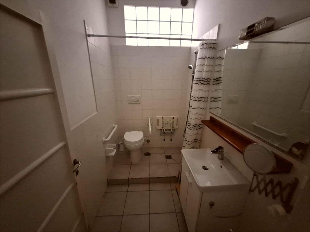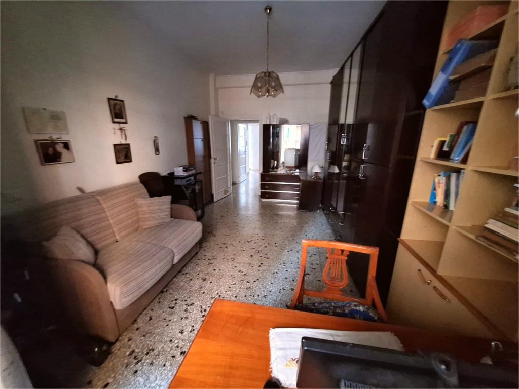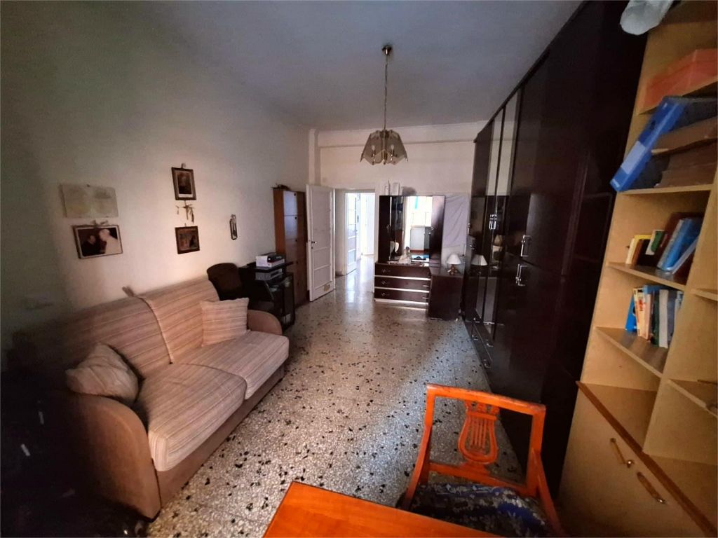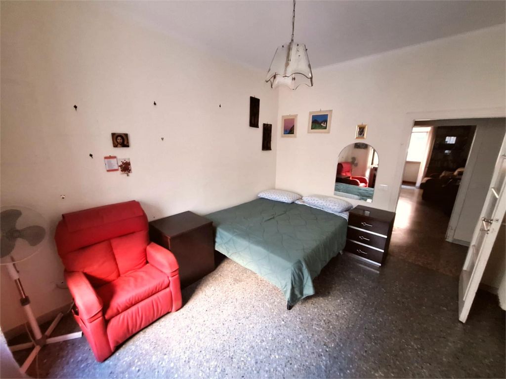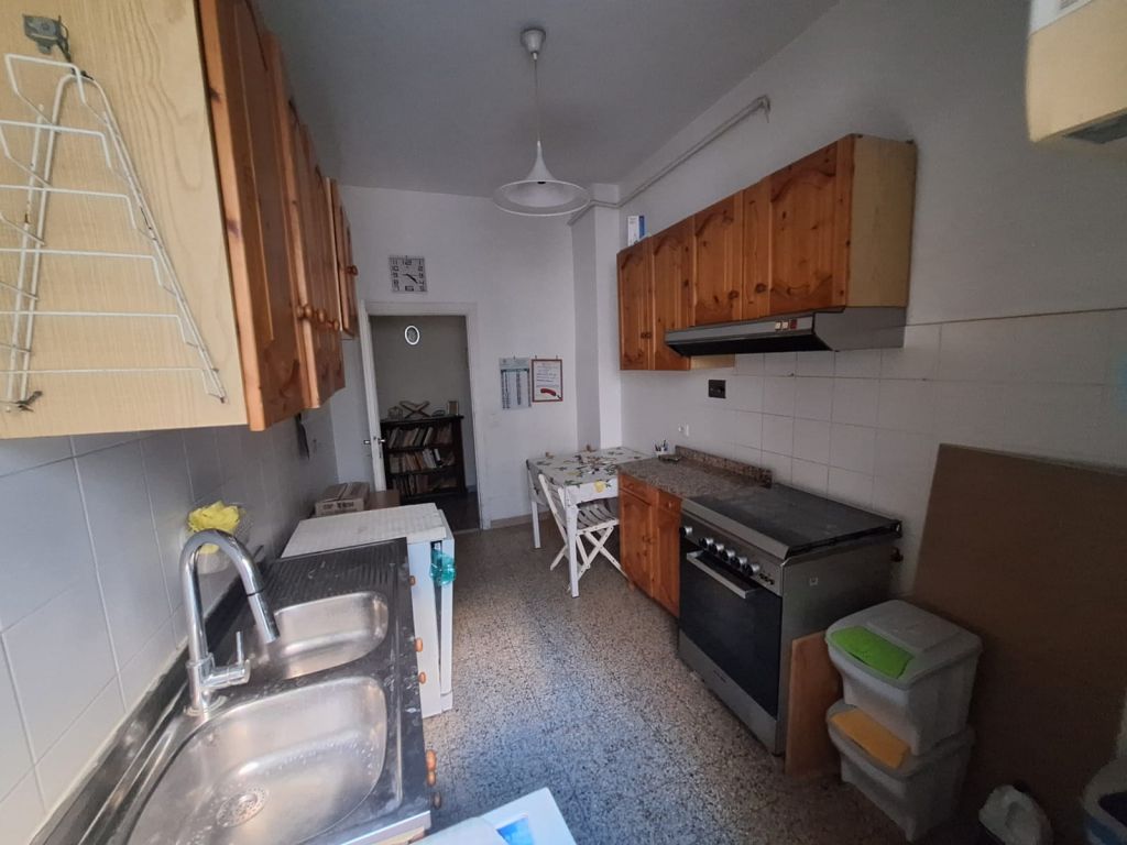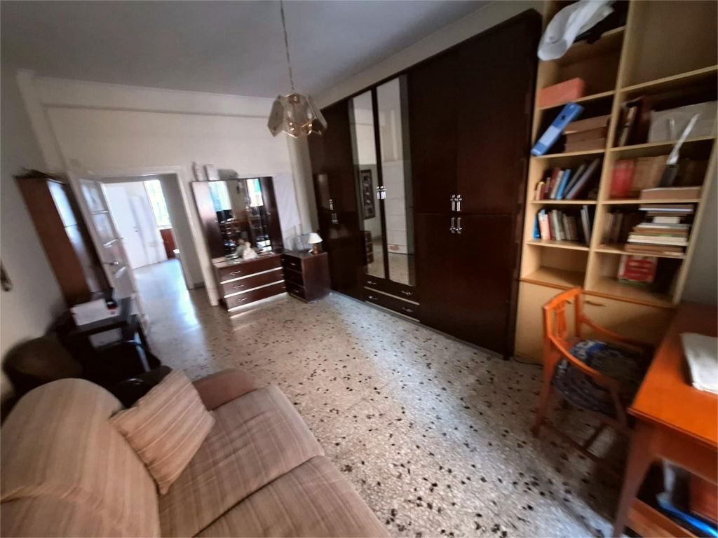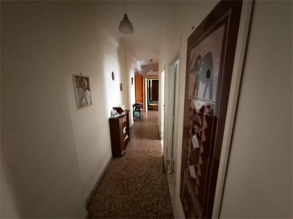 Composto da: ampio ingresso, soggiorno, due camere, cucina abitabile, doppi servizi (di cui uno cieco), ripostiglio ampio. Non ci sono sfoghi esterni. Tutti gli affacci sono interni sulla chiostrina e sul giardino condominiale. Gli infissi sono in alluminio doppio vetro, la porta è blindata e l'esposizione è est-ovest.